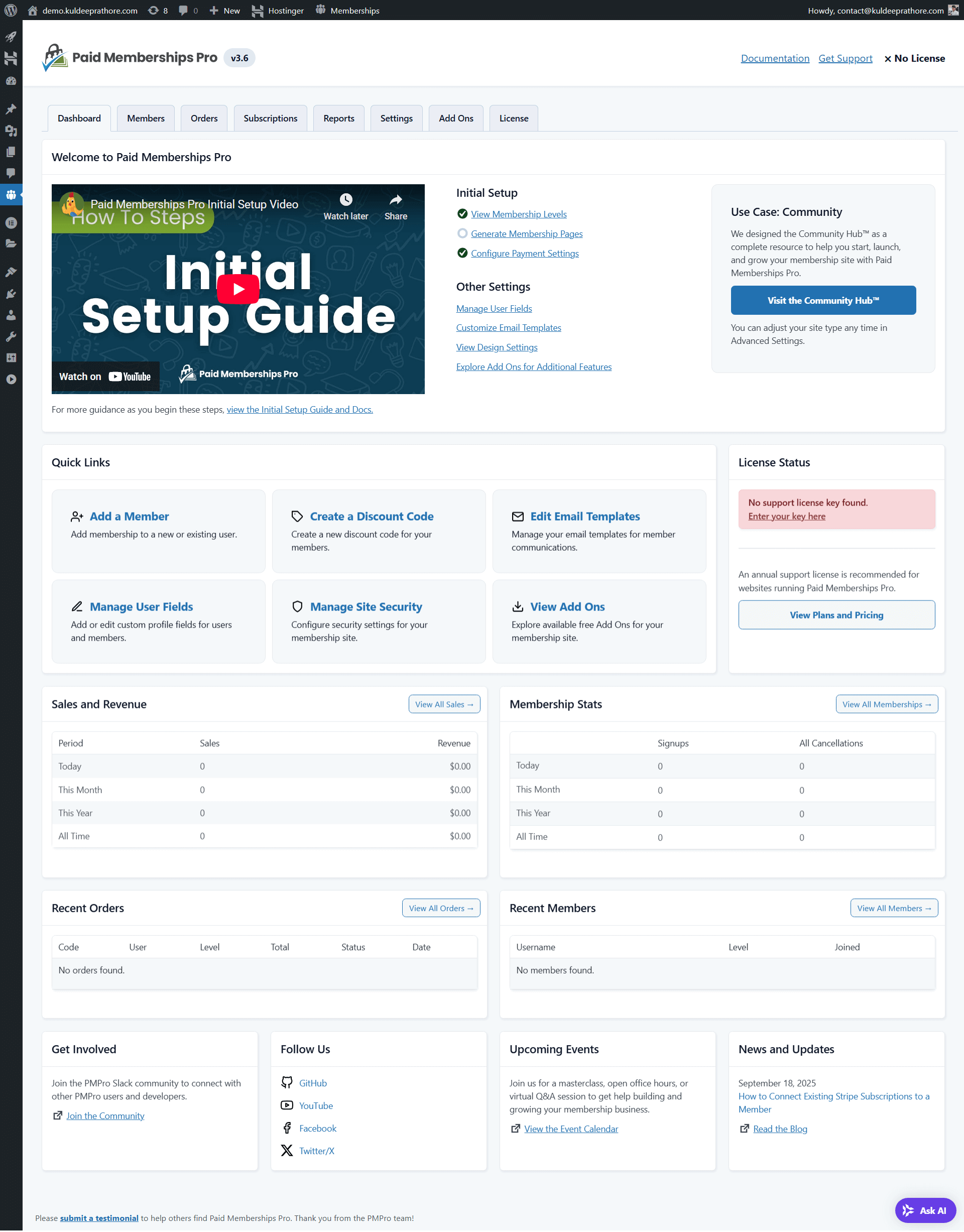 You can use PMPro reports and your analytics tool. Here's how the dashboard looks (fresh account…)