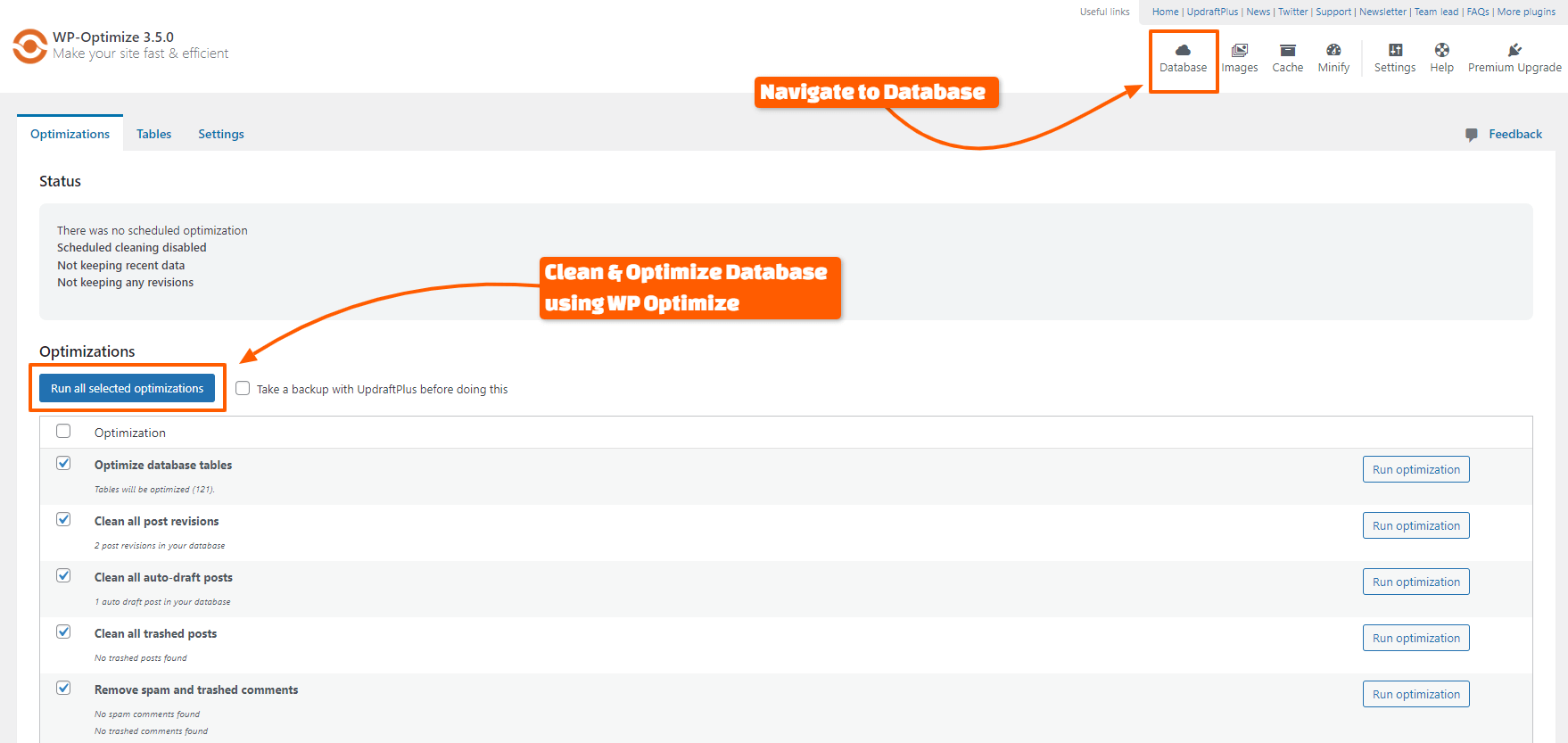 - Use WP-Optimize Plugin: