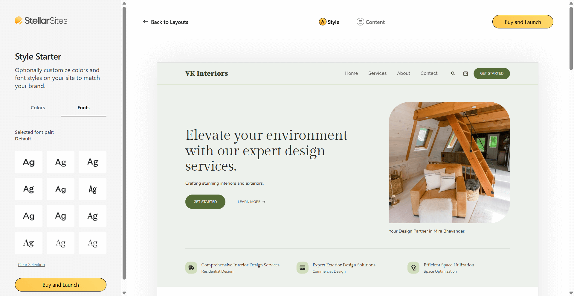 I tested StellarSites by setting up a mock client site: VK Interiors – a website for a local interior designer.
