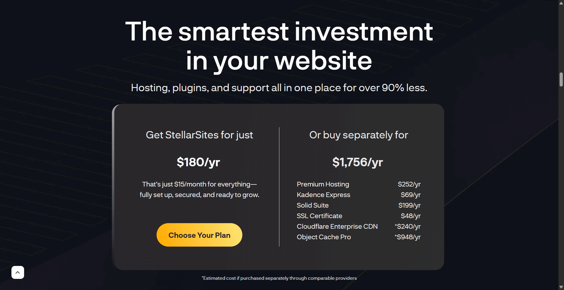 StellarSites solves that by bundling everything → including automated backups, staging, CDN, and support (starting at $15/mo)